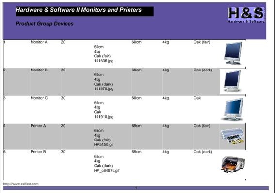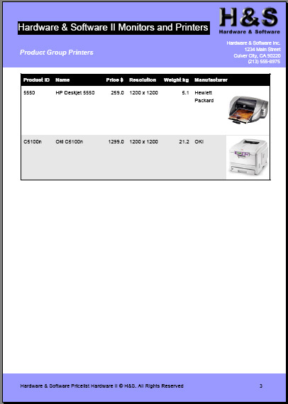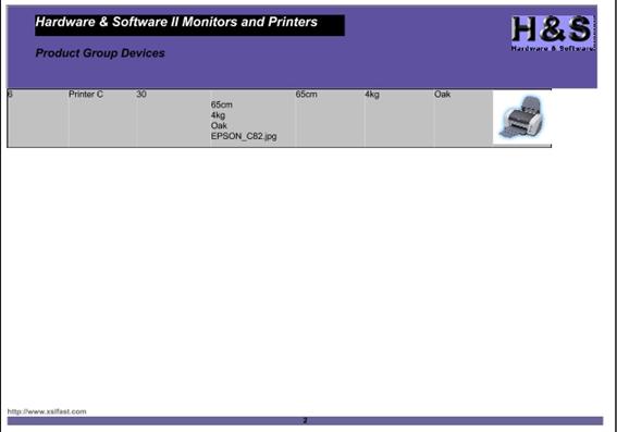 As you see, XSLfast displays the next product group (Printers) after the first one was finished and it also starts a new page for the new product group. This is the result of grouping the page to the node ProductGroup. All information belonging to the next product group are now displayed.