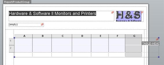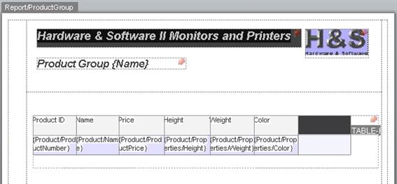 This is the first connection you established between the sheet and the XML file. It also serves as a page breaking marker which means that XSLfast will create a new page for every product group contained in the XML file. You will see the effect during the course of this example.