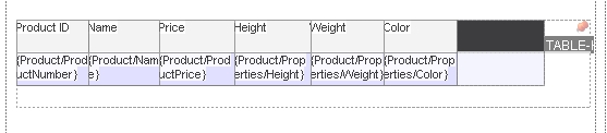 Now you need to specify what content the table should display in general. You should create a grouping between the table and a specified node of the XML file (like you created the grouping between the page and the XML file). Double click the table. Make sure you really double click the table and not just a row or a column. The best way is to double click in the white colored area at the right bottom of the table.