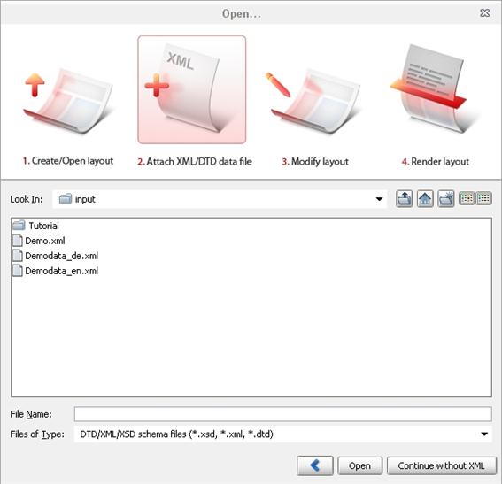 This is XSLfast when you start it. The wizard indicates what you want to do - open an existing layout or create a new one.