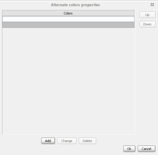 Select the color bar and click "Change". Select your desired color in the color editor window. If you would like to have more than two alternating colors, click "Add" and select the color. In our example, we used white and a bright grey as the alternating table colors.