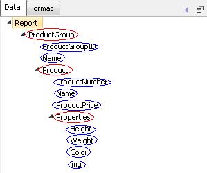Now you can see all the nodes the file is made of, like Report, ProductGroup, Product and Properties and the nodes they contain, like ProductGroupID or Name. The entire contents of the XML file are sorted into these nodes.
